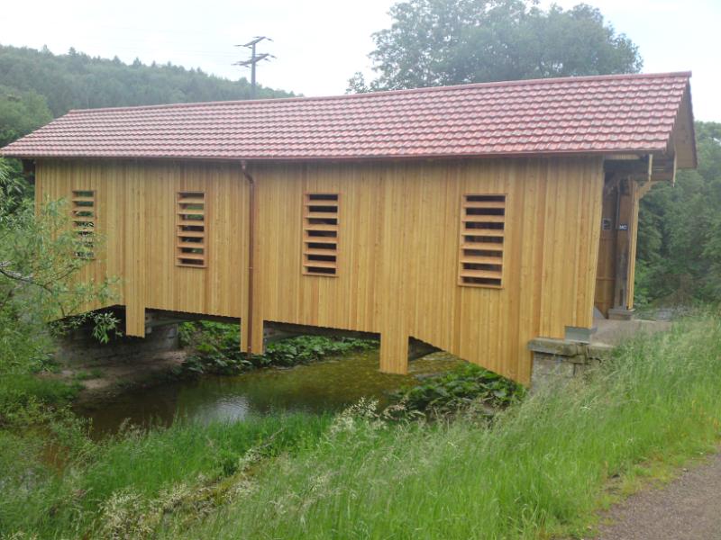 Die neu sanierte alte Steinabrücke begrüßt mich am Wasserweg Wutach