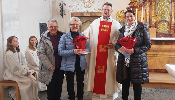 Gefeiert wurde bereits an Pfingsten die 250 Jahre Kirchenweihe St. Nikolaus. Jetzt am Patrozinium wurde ein feierliches Hochamt mit dem Pfarrer Hannes Rümmele der neuen Seelsorgeeinheit an der Wutach gefeiert. Musikalisch gestaltete der Kirchenchor Krenkingen unter Leitung von Birgit Rogg die Messe. Anschließend traf man sich zum Gemeindehock wo die zahlreichen Gäste vom Gemeindetam um Lukas Hug und den Ministranten für die Bewirtung sorgten. Im Gottesdienst wurde Verena Albicker von Pfarrer Rümmele in den Ruhestand verabschiedet. Sie hat über 32 Jahre für die Reinhaltung der Krenkinger Kirche gesorgt und diesen Dienst stets gewissenhaft ausgeführt. Natascha Walde wurde ebenfalls aus dem Kirchendienst verabschiedet. Sie hatte sich mehrere Jahre um die Kirchendekoration gekümmert und kann dies aus zeitlichen Gründen nicht mehr leisten. Mit einem Geschenk und Blumen wurde die beiden Frauen verabschiedet.